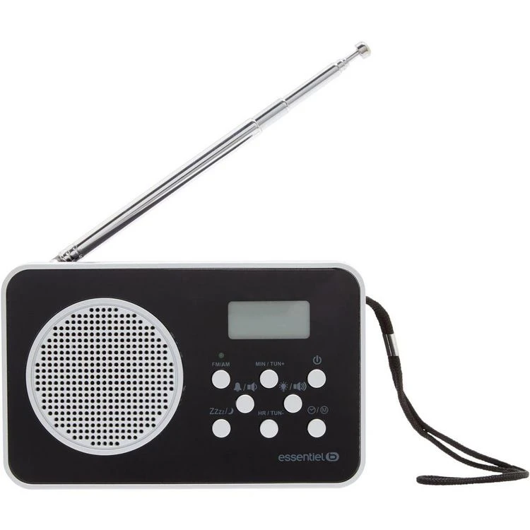 | Avantages | Petite taille, Mémorisation de stations (20 stations AM, 20 stations FM), Réveil par radio ou buzzer, Fonction Snooze (répétition), Fonction Sleep (mise en veille), fonctionne sur piles | |